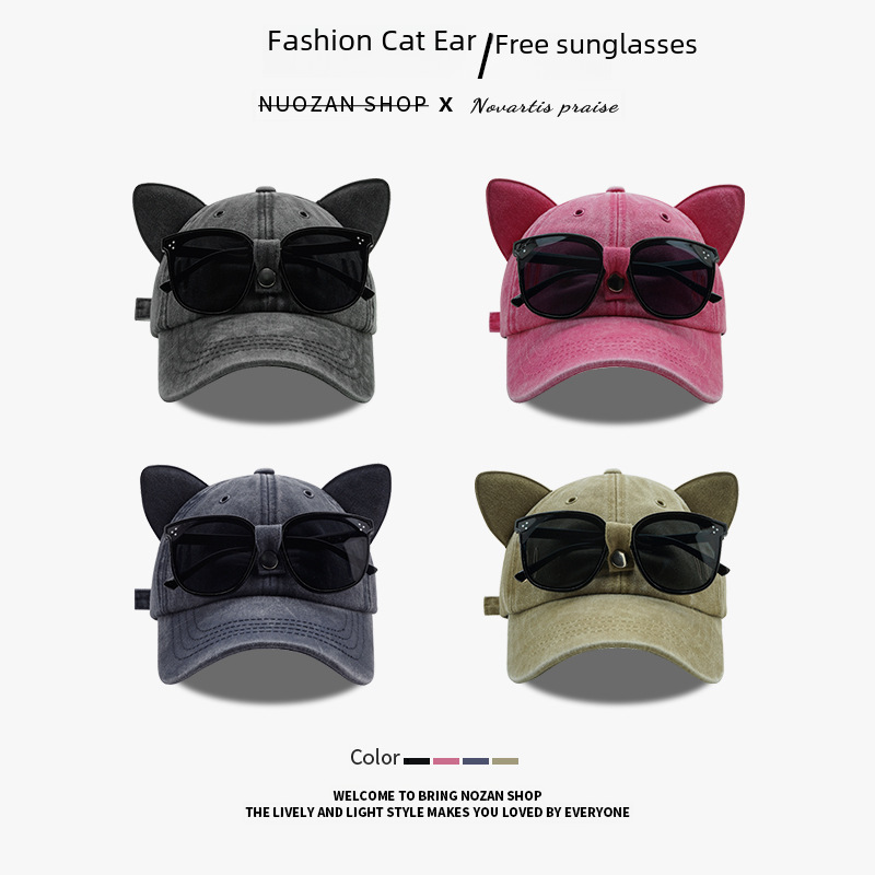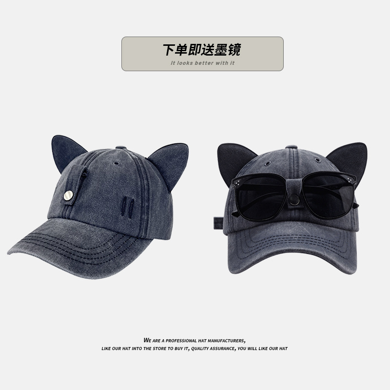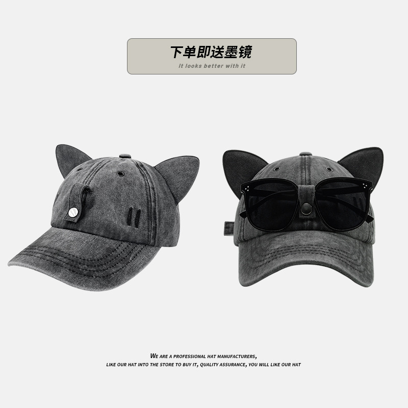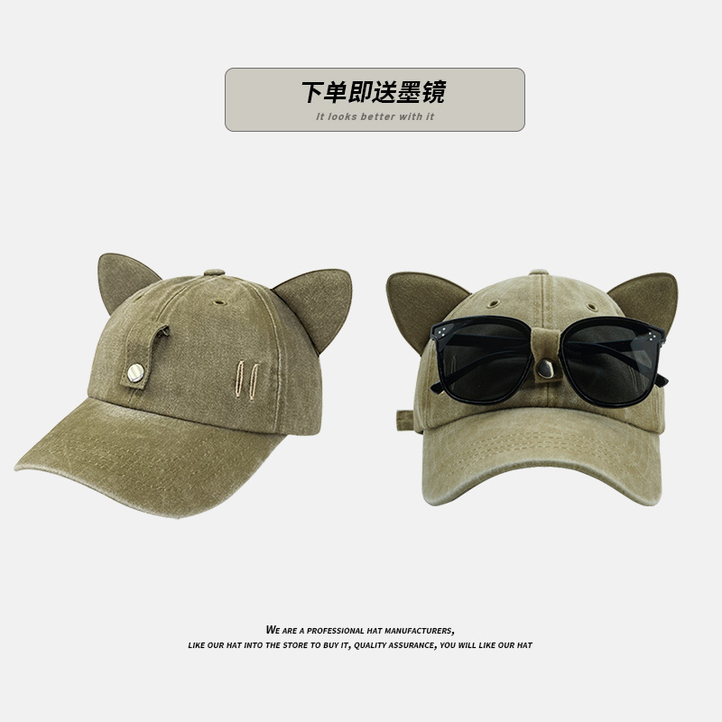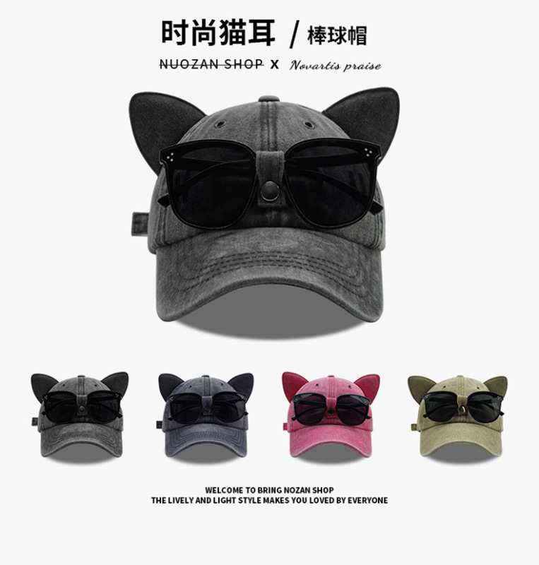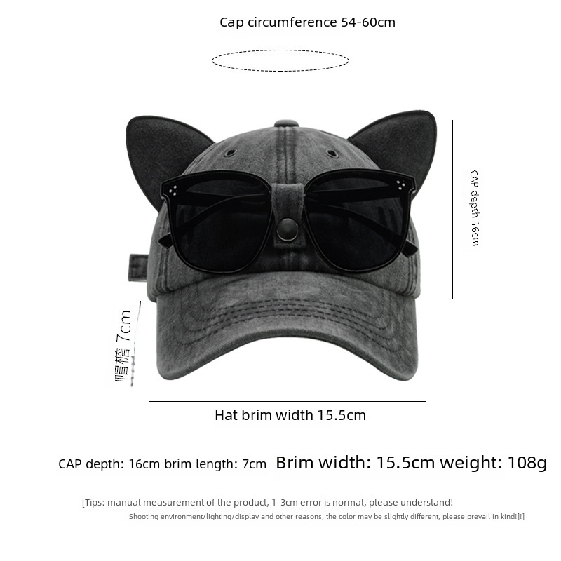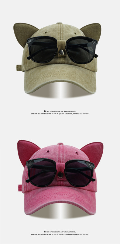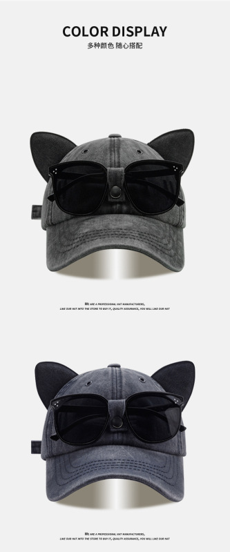 - 款式:可愛貓耳朵飛行員墨鏡棒球帽女男