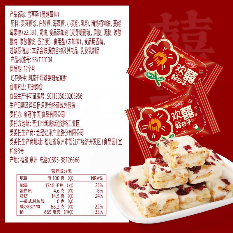 - Packaging Specification: 【1 jin】Cranberry Flavor Snowflake Crisp 500g (approximately 48 packs)