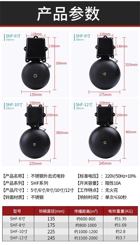 - Specification: SHF-150MM-6-inch Electric Bell