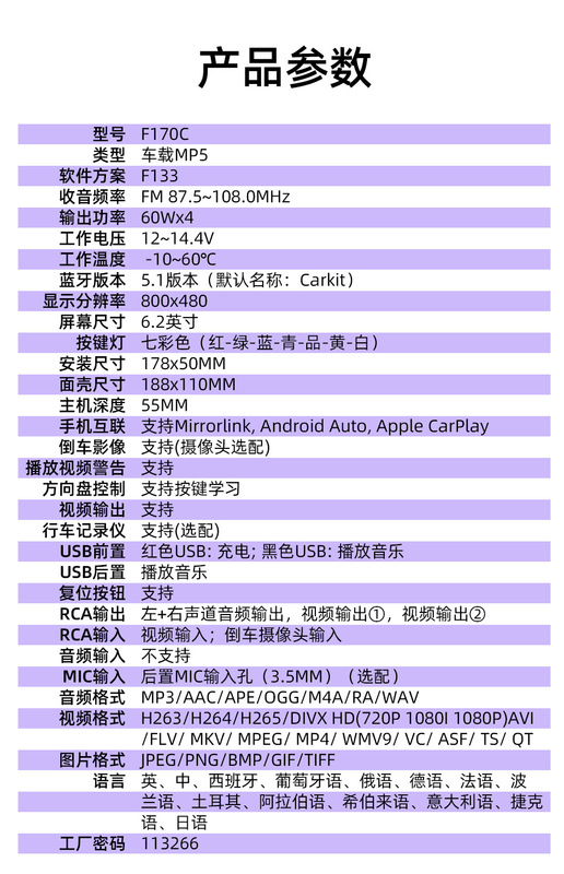 - 附加功能:Carplay,手機互聯
