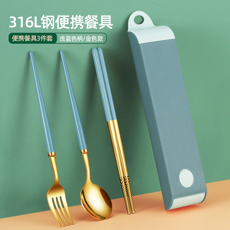 - Specification: Foggy blue (set of three) 316L/golden