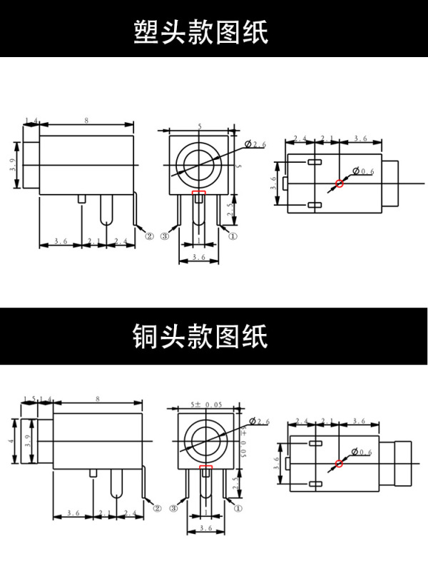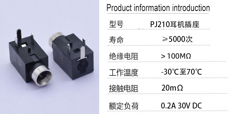 - Model: PJ210 Earphone Socket Plastic Head Version