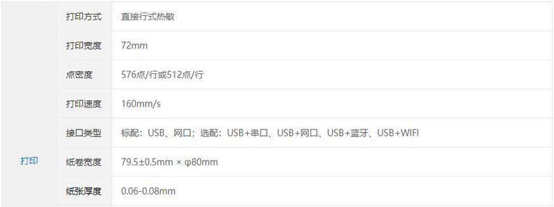 - 打印幅面:80mm