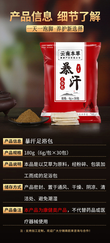 - Net Content: Yunnan Herbal Sweating Foot Bath Kit (1 Bag containing 30 Pouches)