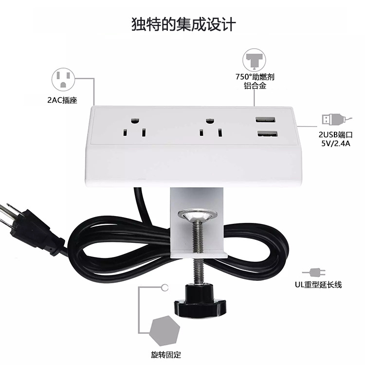 - Model: Dual Secure Clamp Desk US Style 3+2 USB (White) 1.5M Power Cord