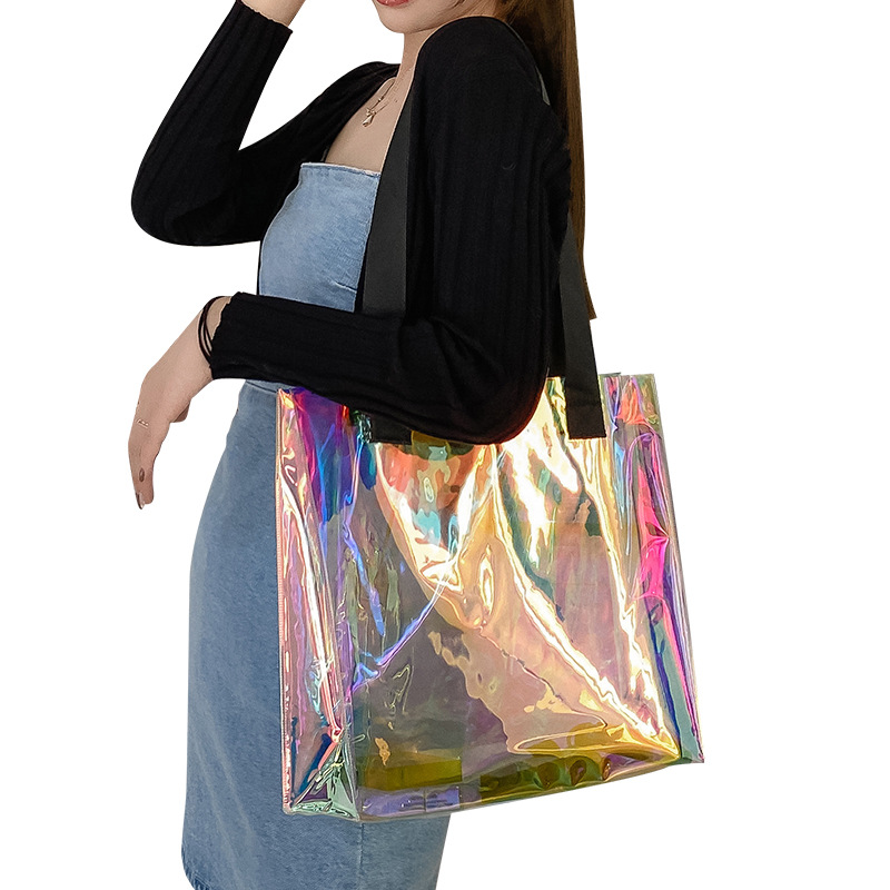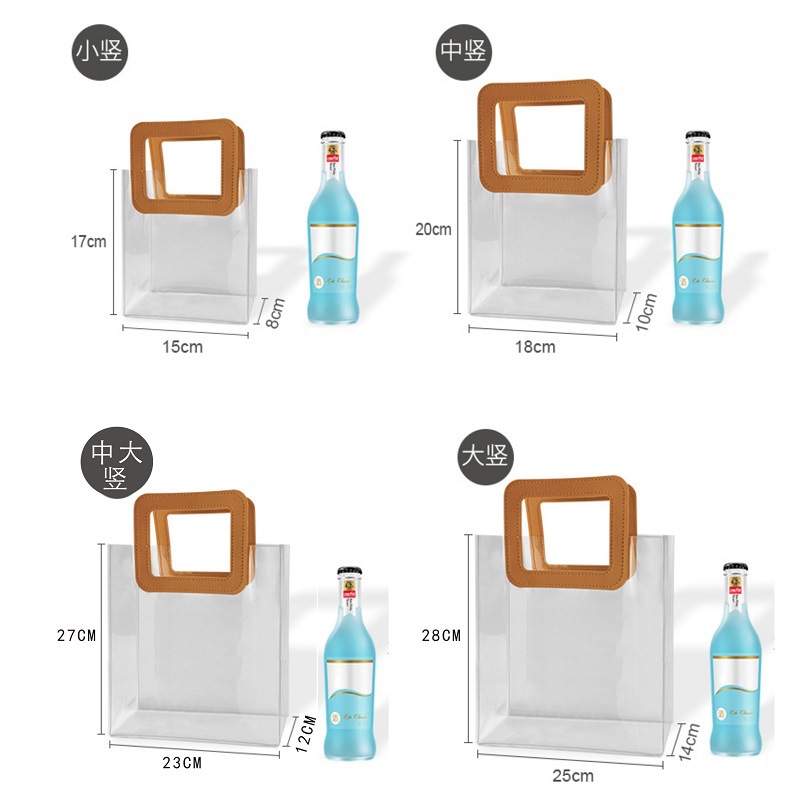 - Model specifications: Dimensions: transparent champagne color tote 60 Denier thickness 25*15*28; handle size (length*width): 14*12; color: starts from one
