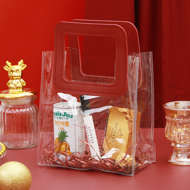 - 規格型號:一個起拍*透明款紅色手提60絲18×10×20