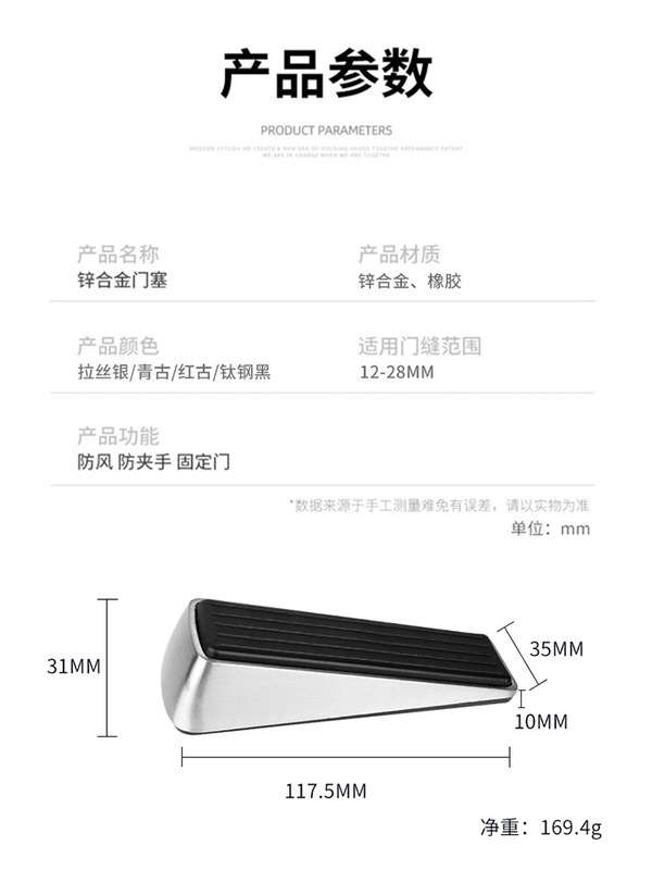 - Specification: Upgraded Zinc Alloy Mobile Door Stop [Brushed Silver]