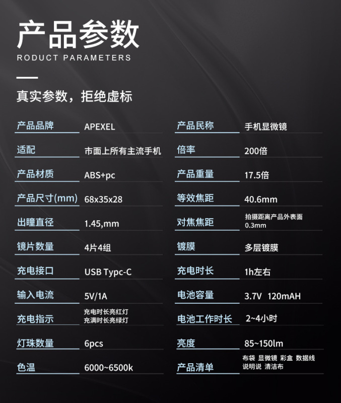 - Scope of application: biological research/jewelry identification/scientific experiments/children's toys