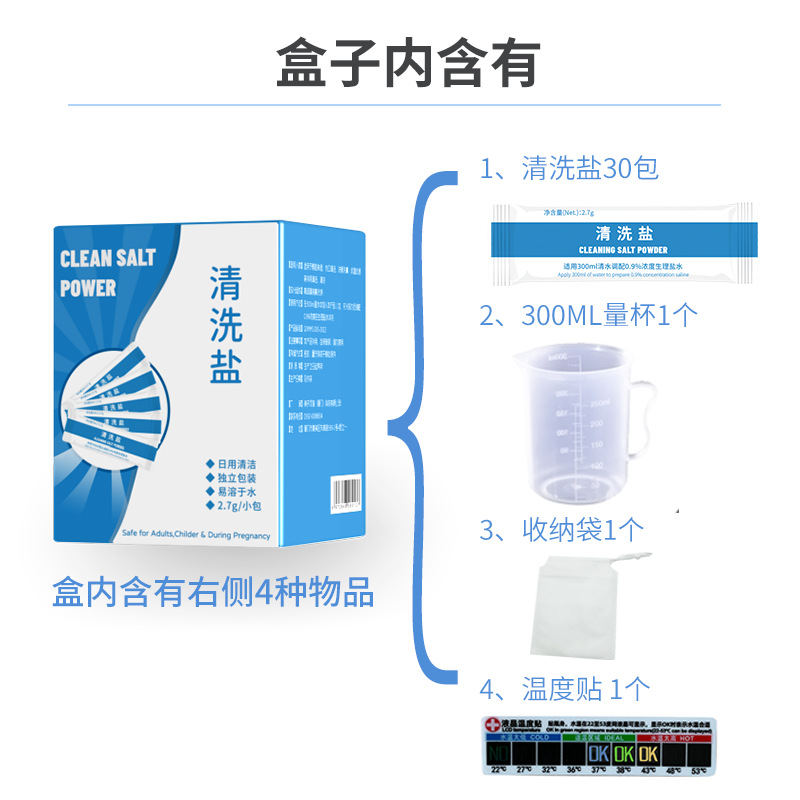 - Specification: Box Packaging 【Contains 30 Packs of Cleaning Salt + Measuring Cup + Storage Bag + Temperature Sticker】