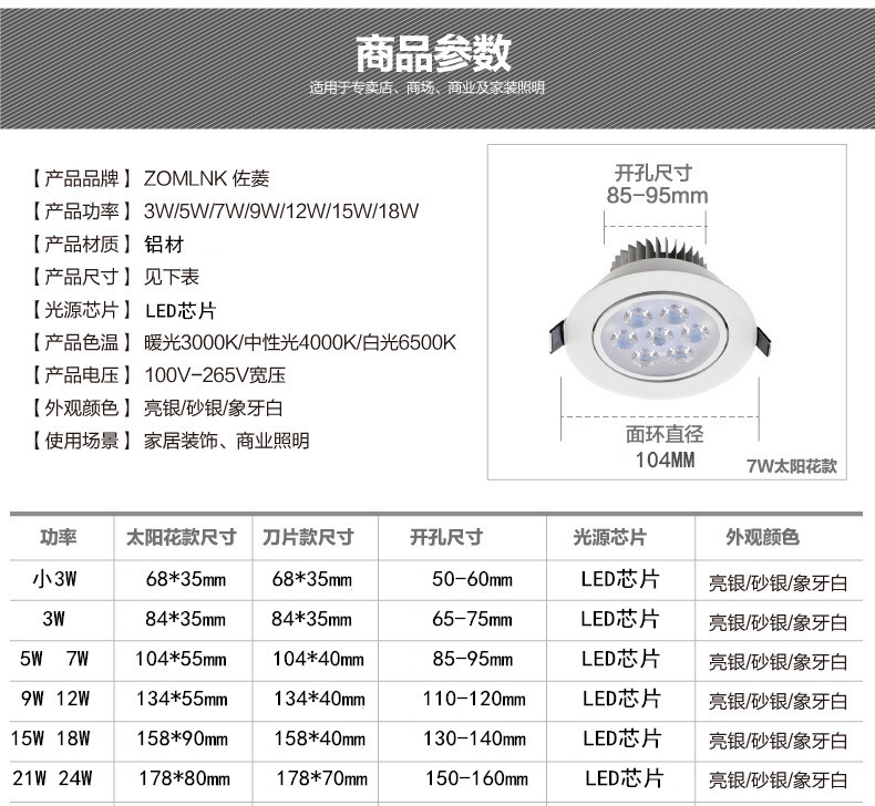 - Color temperature: bright silver neutral light (sunflower model)