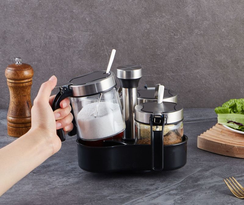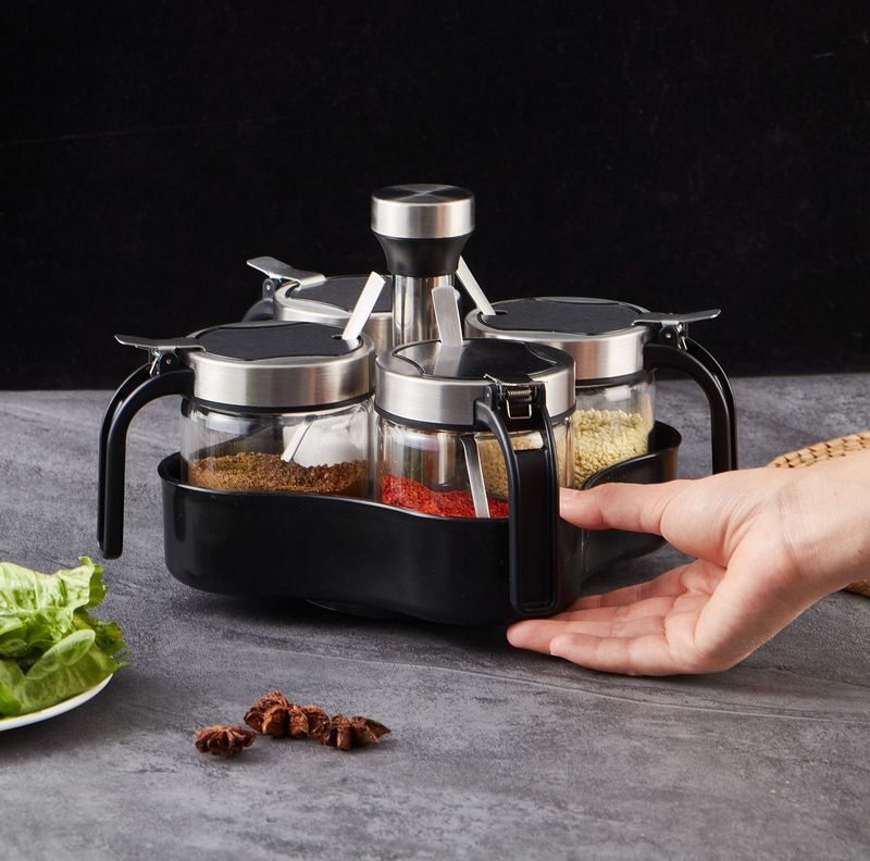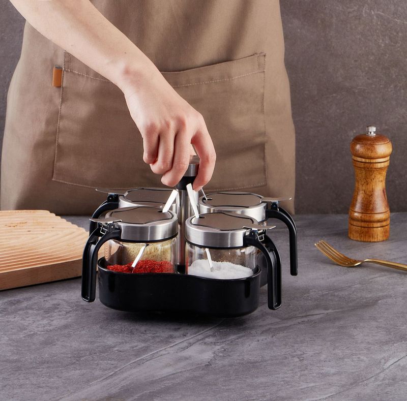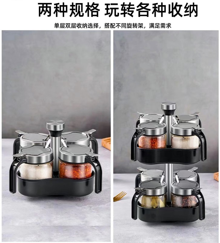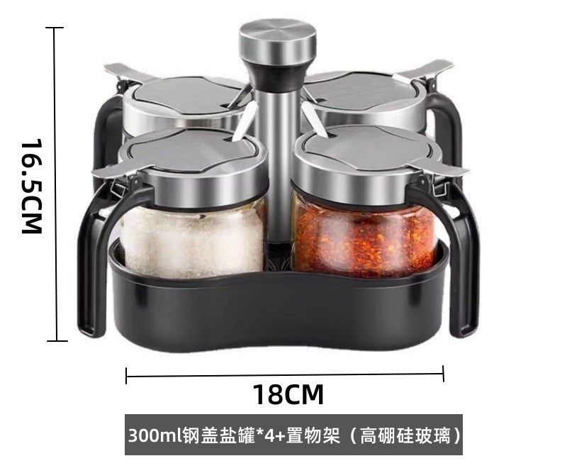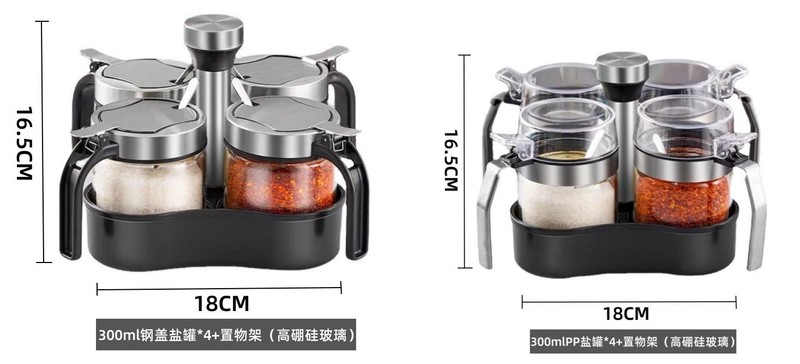 - 規格:300ml鋼蓋鹽罐*4+旋轉置物架(贈勺)