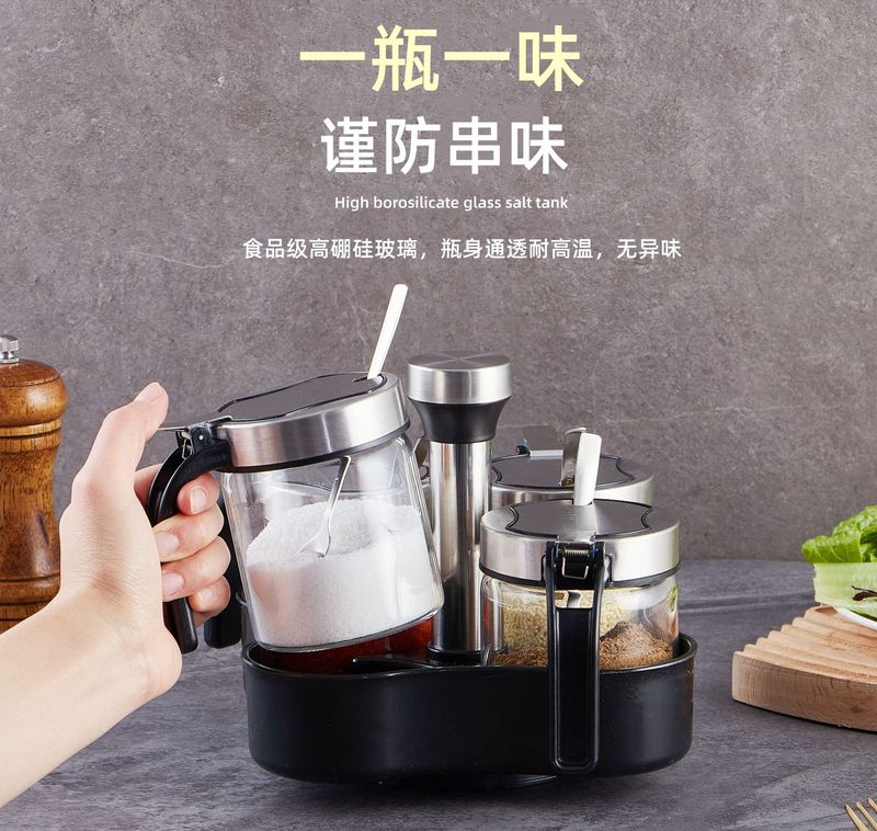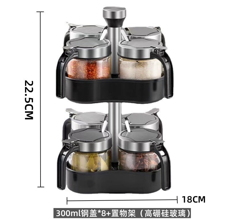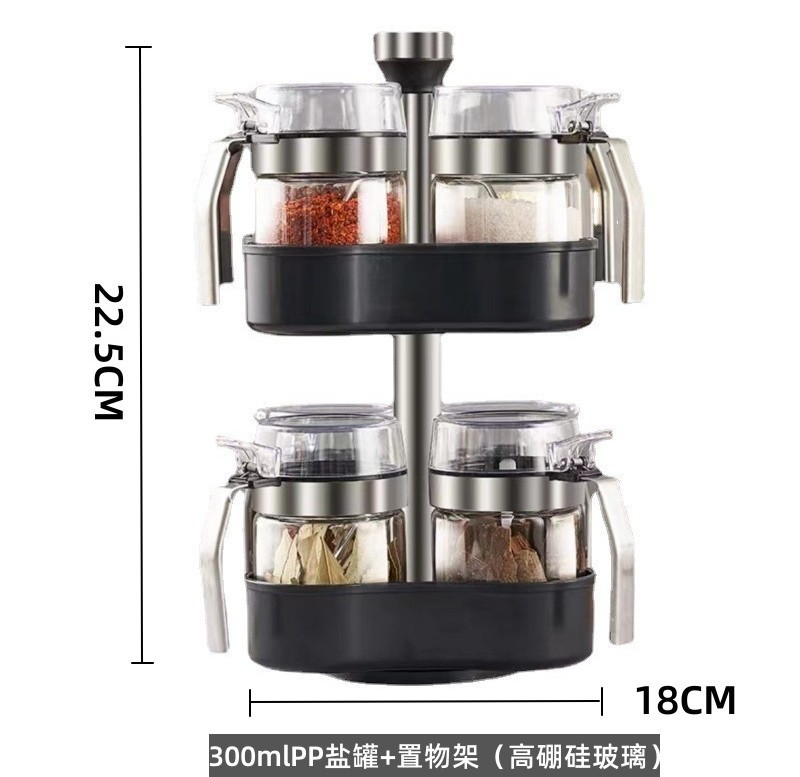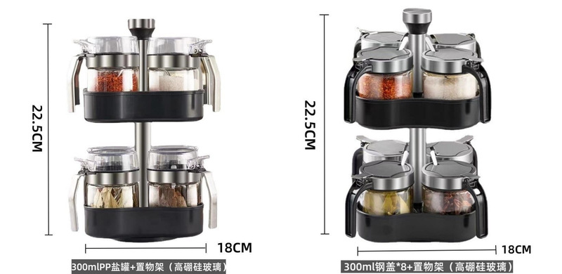 - 規格:300mPP蓋鹽罐*8+旋轉置物架(贈勺)