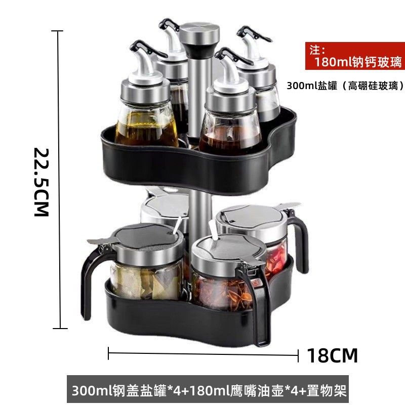- 規格:300ml鋼蓋鹽罐*4+180ml油瓶*4+旋轉置物架(贈勺)