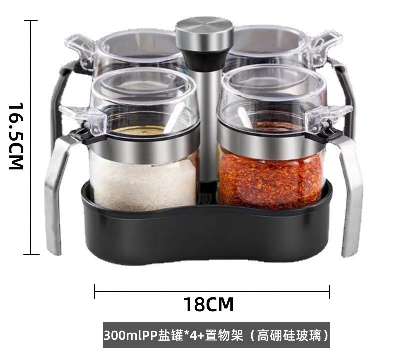 - 規格:300mlPP蓋鹽罐*4+旋轉置物架(贈勺)