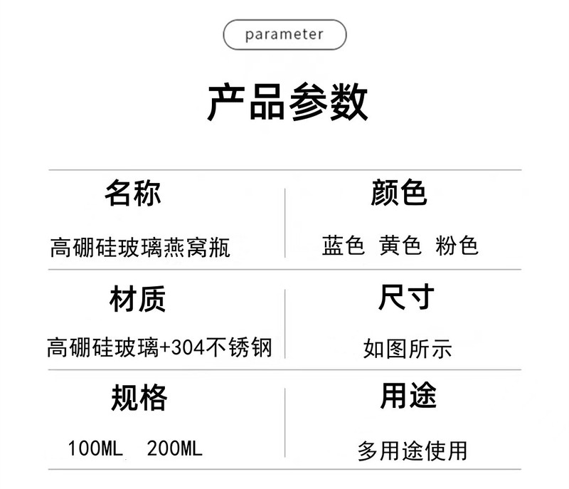 - 用途:燕窩瓶中藥瓶儲物罐密封罐蜂蜜罐牛奶杯