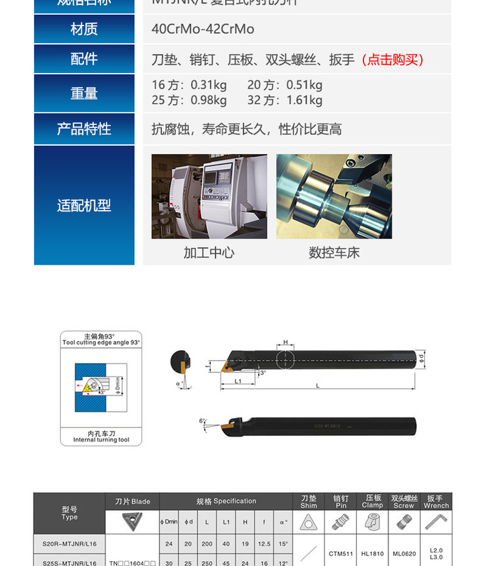 - Specification: S40T-MTJNR16 Straight Knife