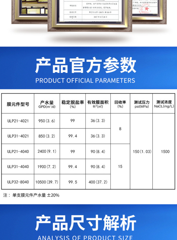 - Membrane Type: Reverse Osmosis (RO) Membrane
