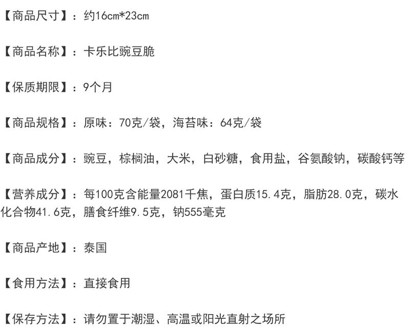 - Packaging Specification: Seaweed Flavor 64g