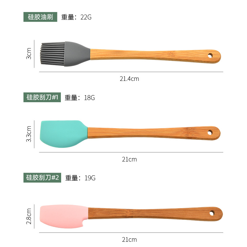 - Material: Silicone + Bamboo Handle