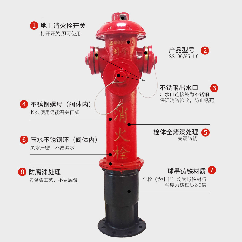 - Specification: SS100/65-1.6 Regular Hydrant (0.88 meters, Integrated)