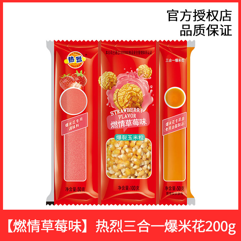 - Packaging Specification: 200g Rely Three-in-One Popcorn [Passionate Strawberry Flavor] (Popping) * 1 bag