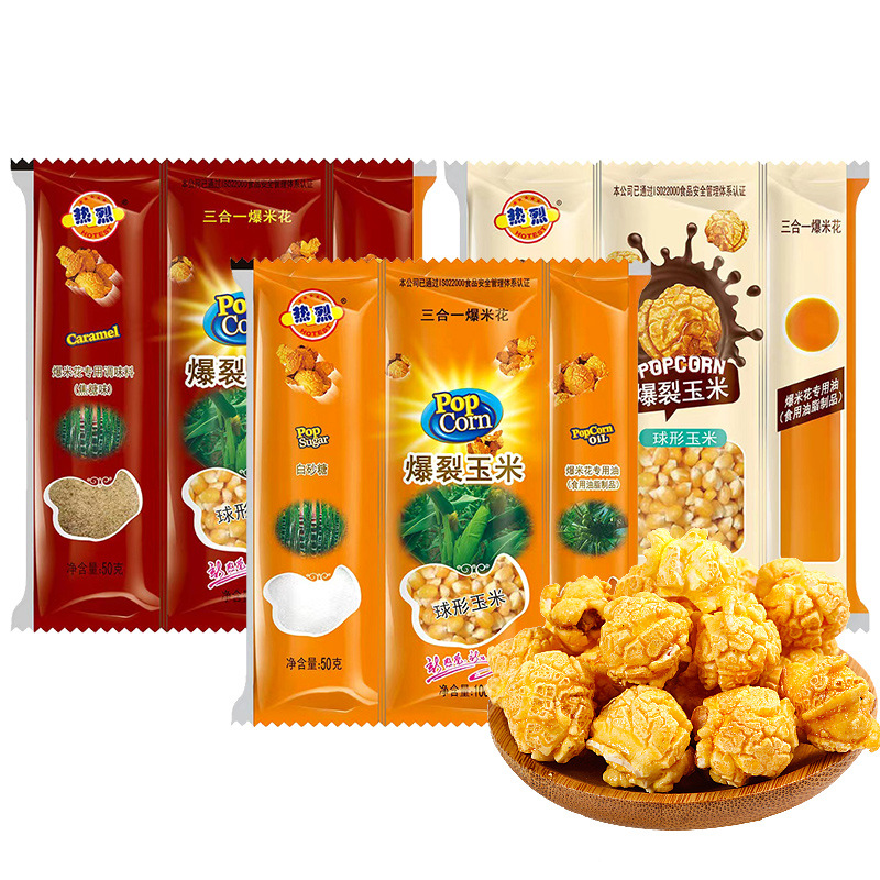 - Ingredients and Compositions: Popcorn corn kernels, white sugar, popcorn专用 oil (edible fat products); palm oil, coconut oil, etc., please refer to the actual information on the product packaging.