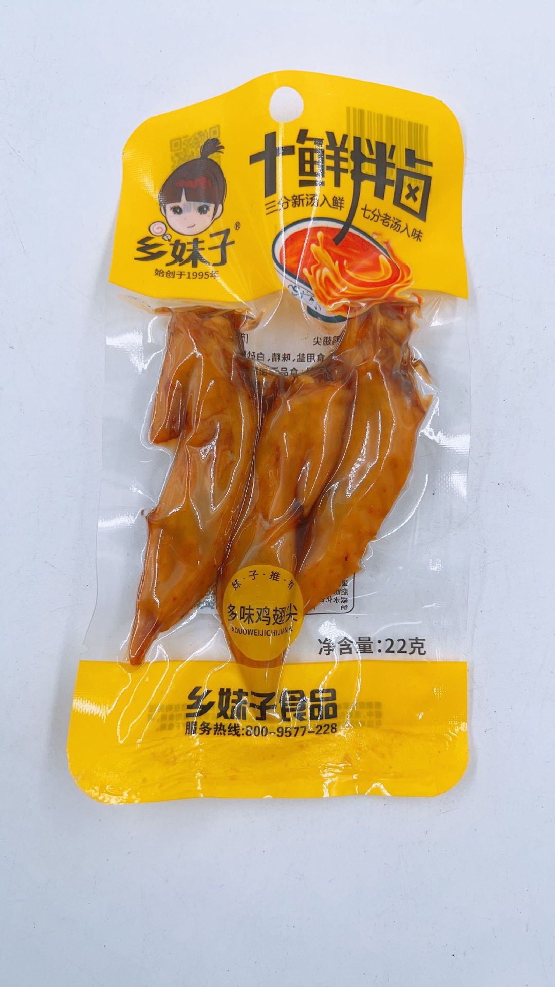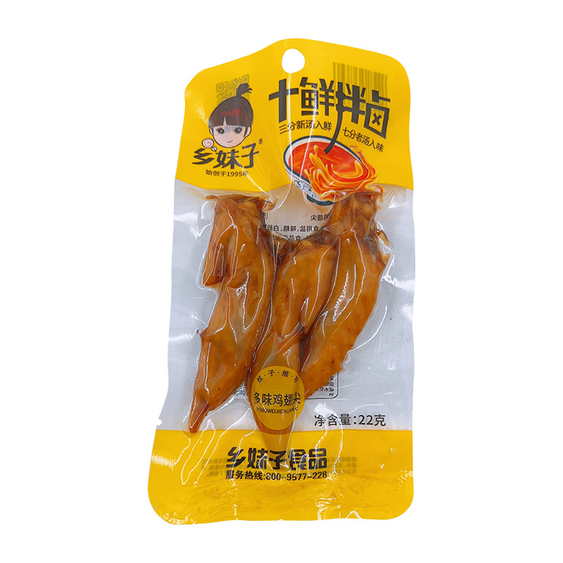 - 包裝規格:鄉妹子22g多味雞翅尖