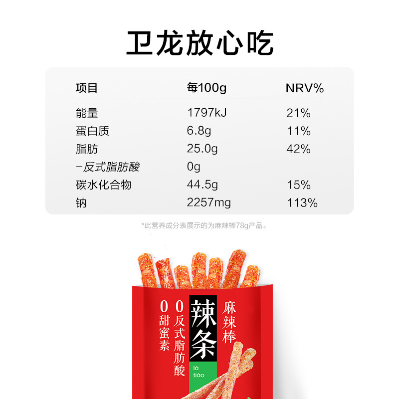 - Packaging specifications: 78g large spicy stick