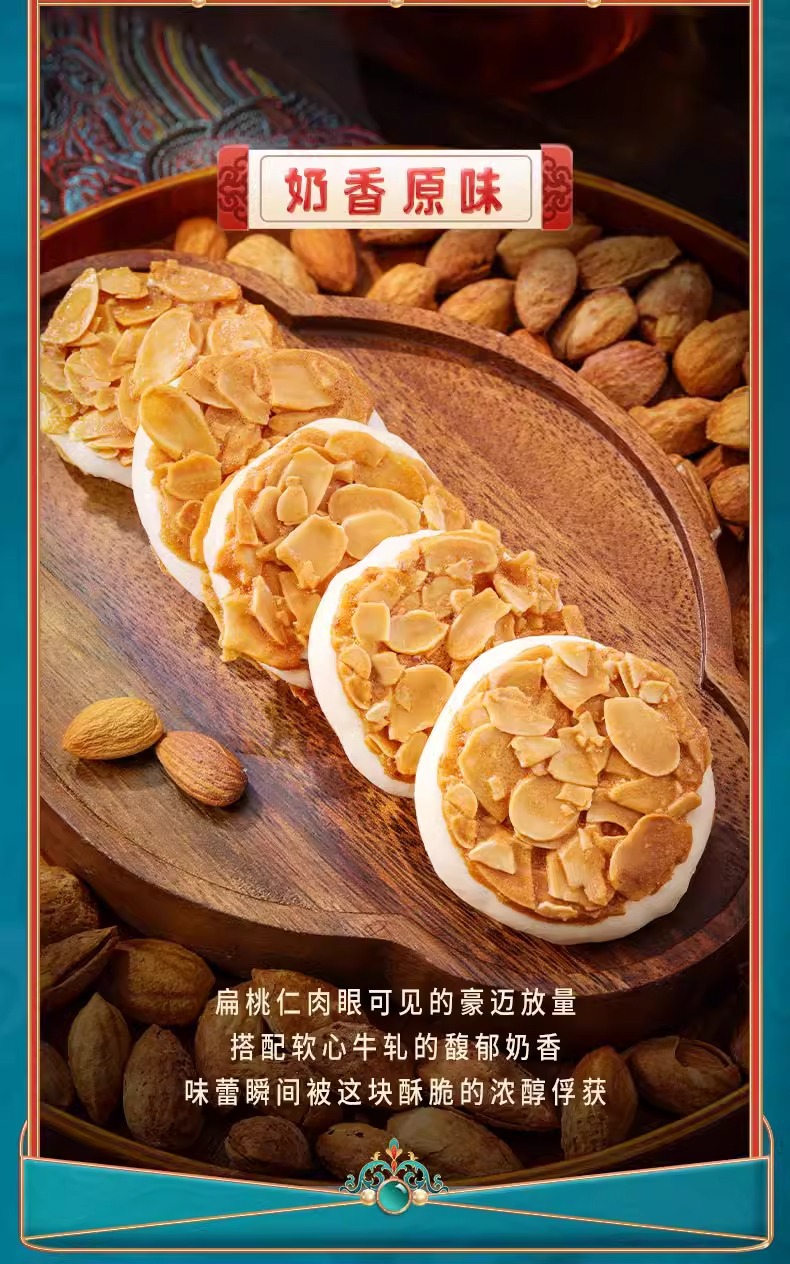 - Ingredients and Mixings: Pastry (almond slices, eggs, white sugar, cream wheat flour, edible salt) Filled with Nougat (malt sugar, sorbitol, eggs, full-fat milk powder, cream, water