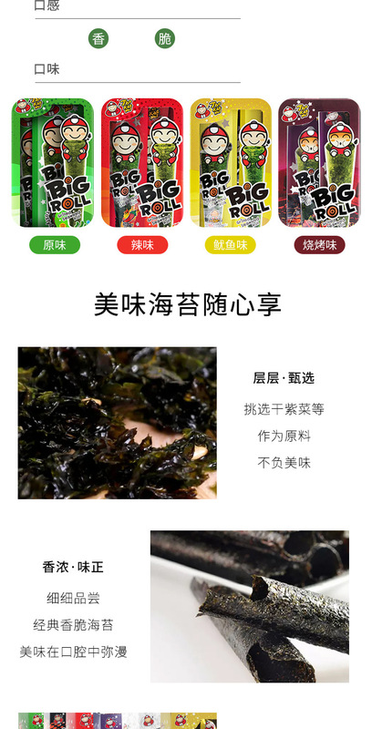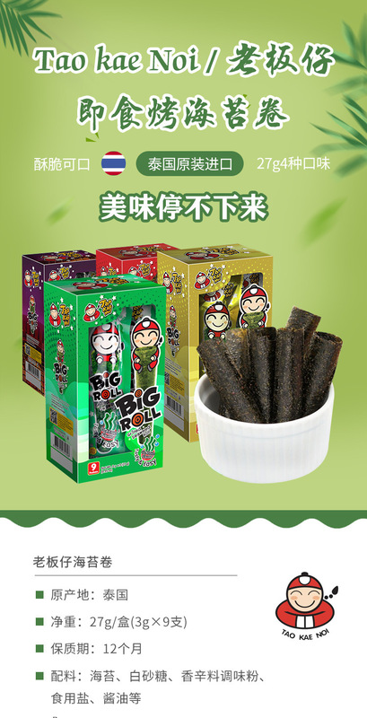 - Packaging Specification: Seaweed Roll 27g/box Original Flavor