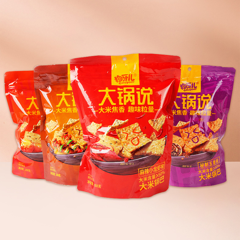 - Packaging Specifications: Dogtooth Rice Cracker (小龙虾味) 188g