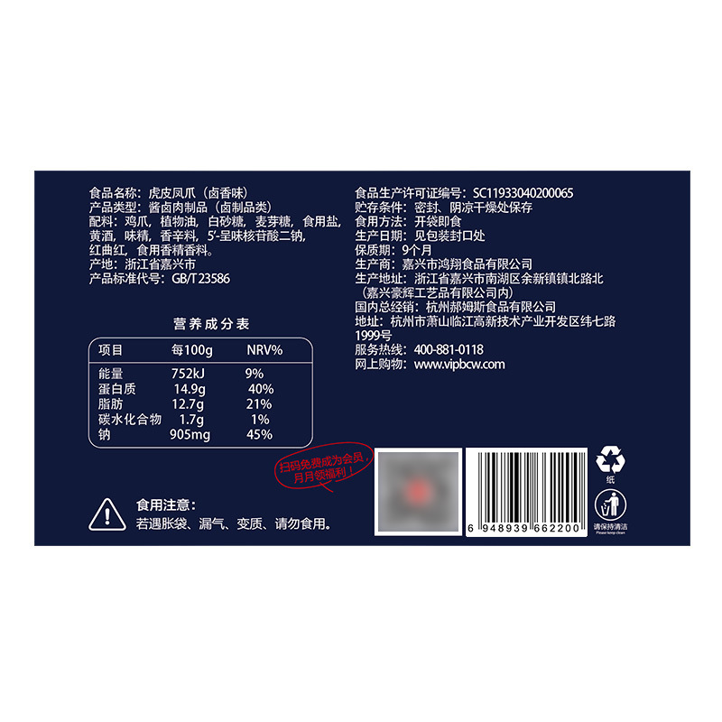 - Packaging specification: Braised tiger skin chicken feet 160g