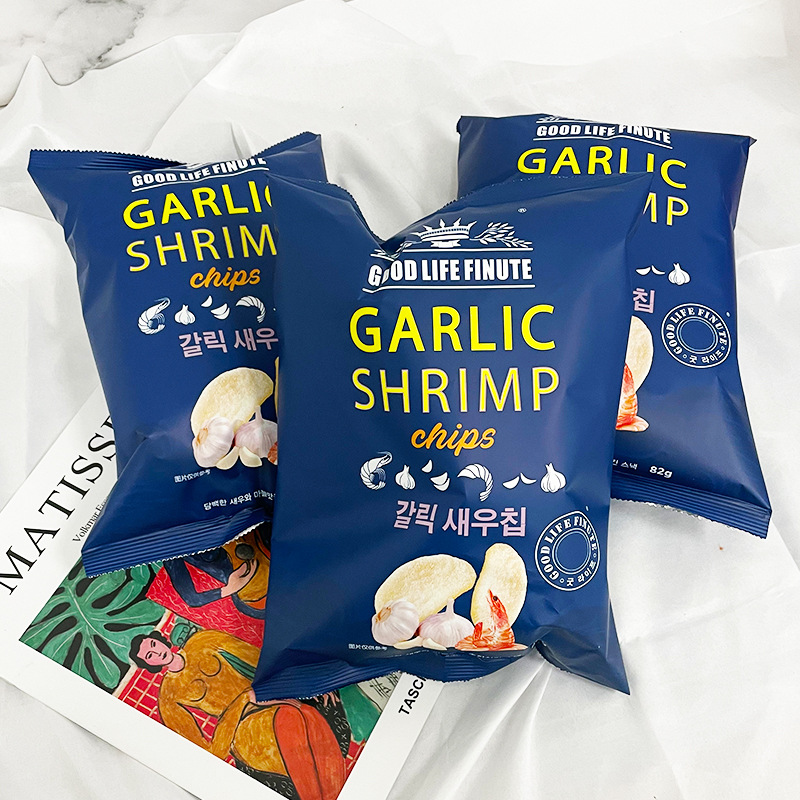 - Packaging Specification: 82g/pack Garlic-flavored Shrimp Crisps