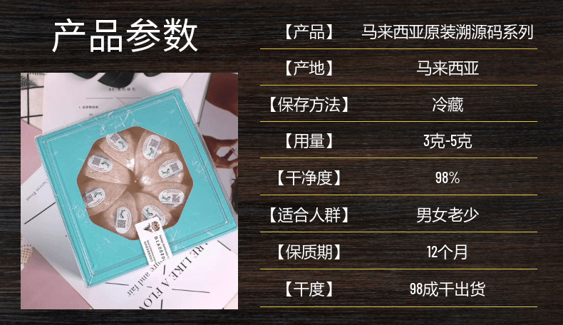 - 包裝規格:馬來西亞特惠溯源碼密盞50g/盒