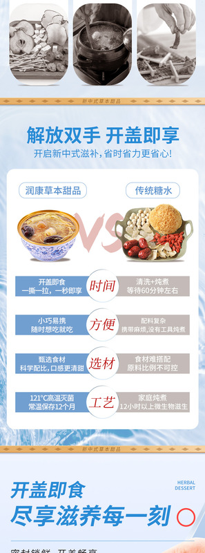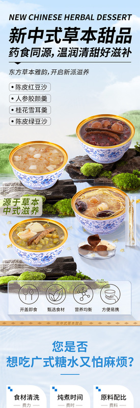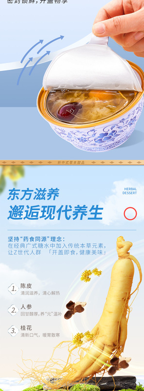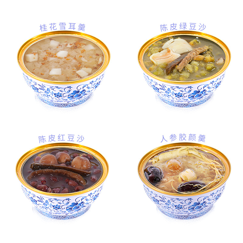 - Main Ingredients: Wholesale ready-to-eat herbal dessert nourishing ginseng jelly facial soup Cantonese-style sweet soup tangerine red bean porridge processing