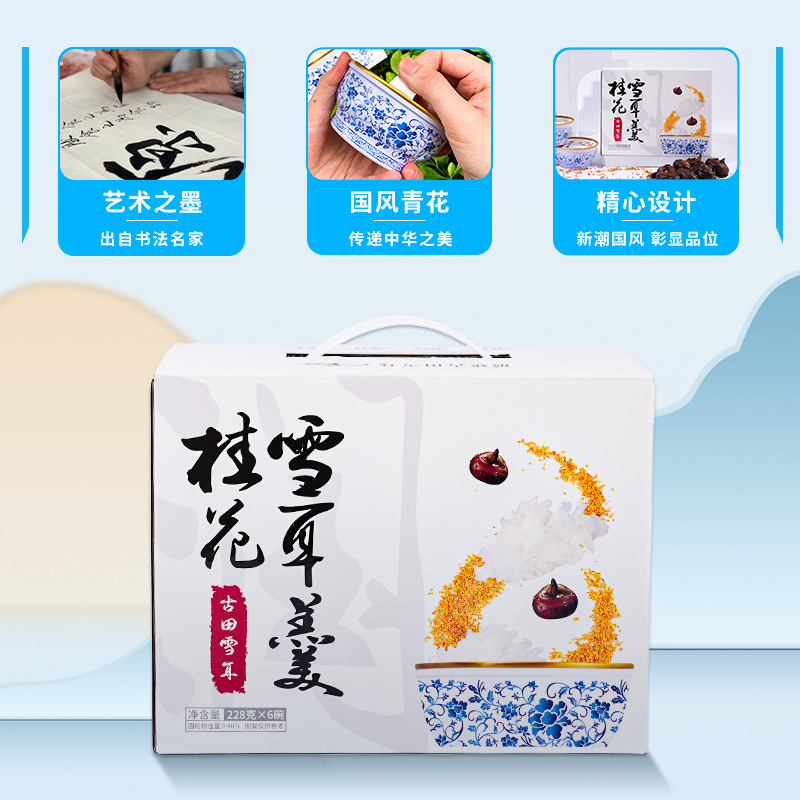 - 包裝規格:桂花雪耳羹禮盒+6碗/盒