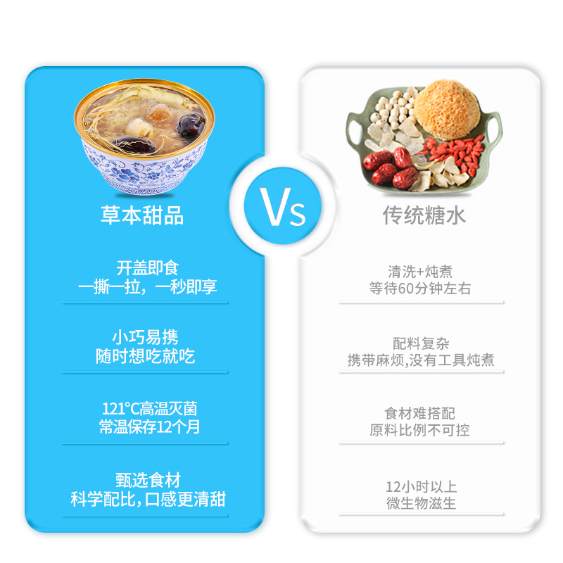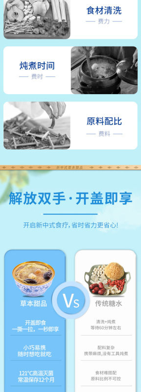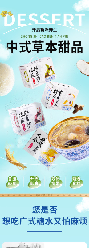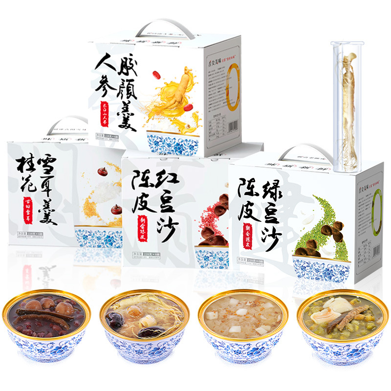 - 主要原料:人參、陳皮、紅豆、桂花雪、耳羹