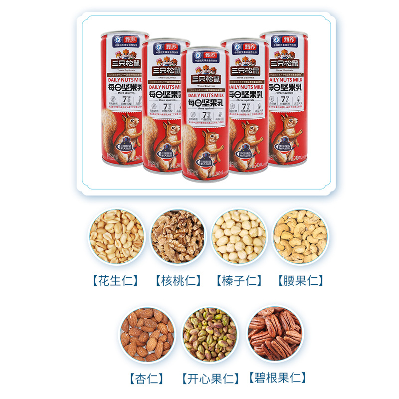 - Packaging Specification: Three Squirrels Nut Milk 240ml x 3 Cans