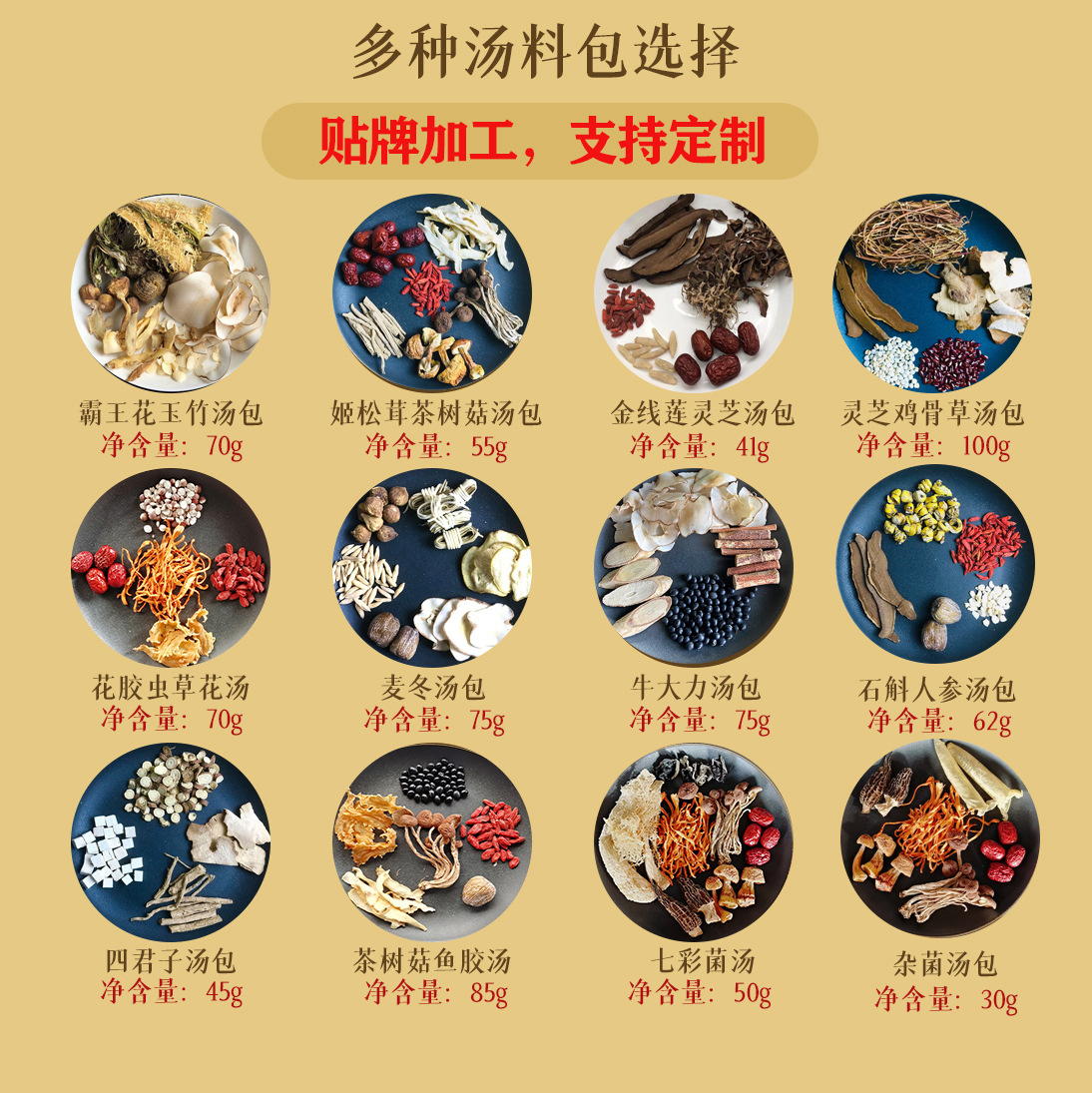 - Packaging Specifications: T08#七彩菌汤包 50g