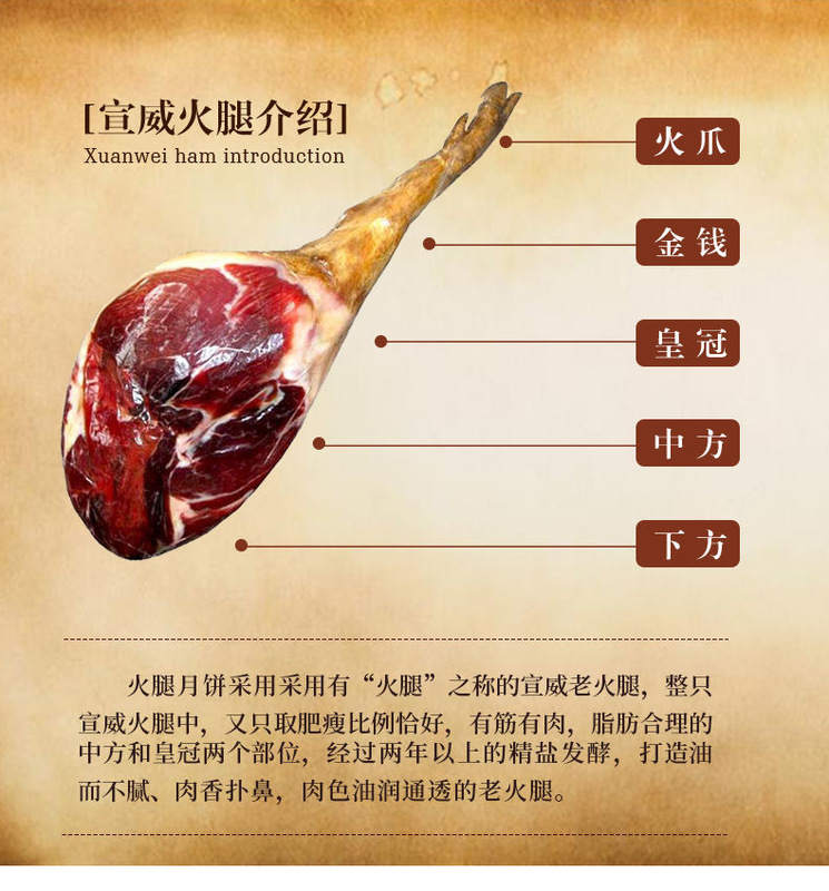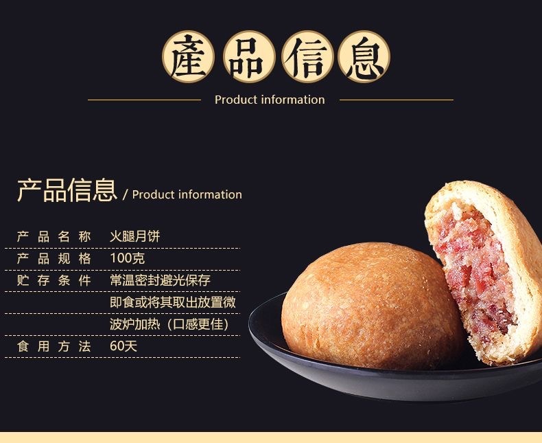 - Packaging specification: Paper-wrapped ham mooncake 100g*5 pieces
