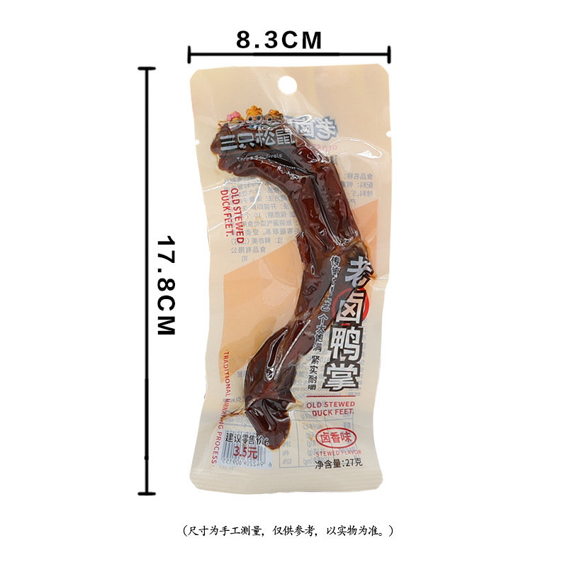 - Packaging Specifications: Three Squirrels Aged Braised Duck Feet 27gX1 Bag