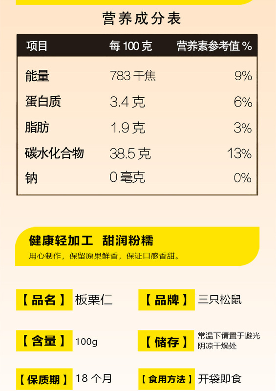 - Flavor: Three Squirrels Beauty Chestnut Chestnut Nuts 100g*3 bags