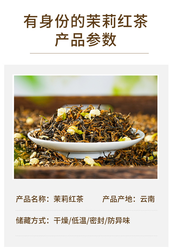 - Raw Materials & Ingredients: Yunnan Big Leaf Tea, Jasmine Flowers