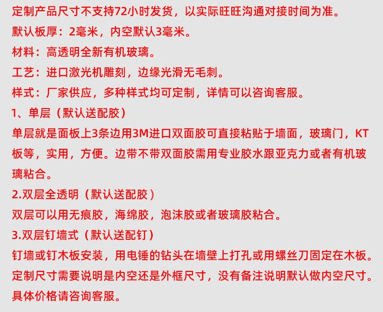 - Specification: Custom Size (Double Layer) Free with Adhesive