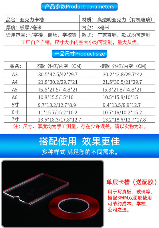 - Specification: Single Layer 3-inch (Inner Size 60*89mm) Horizontal [Long Side Opening] [Free with Adhesive]
