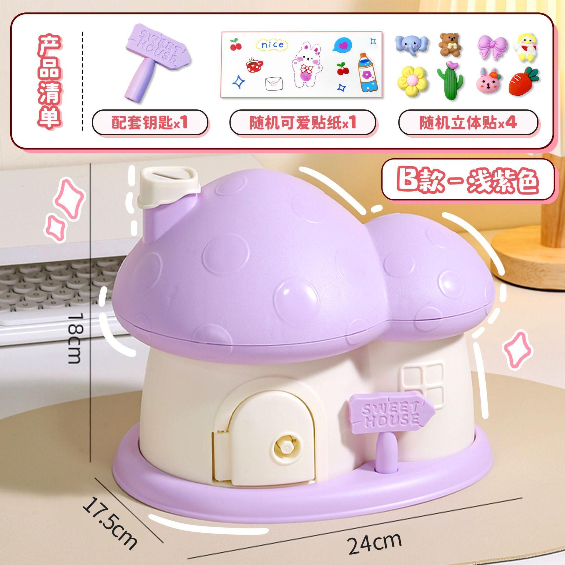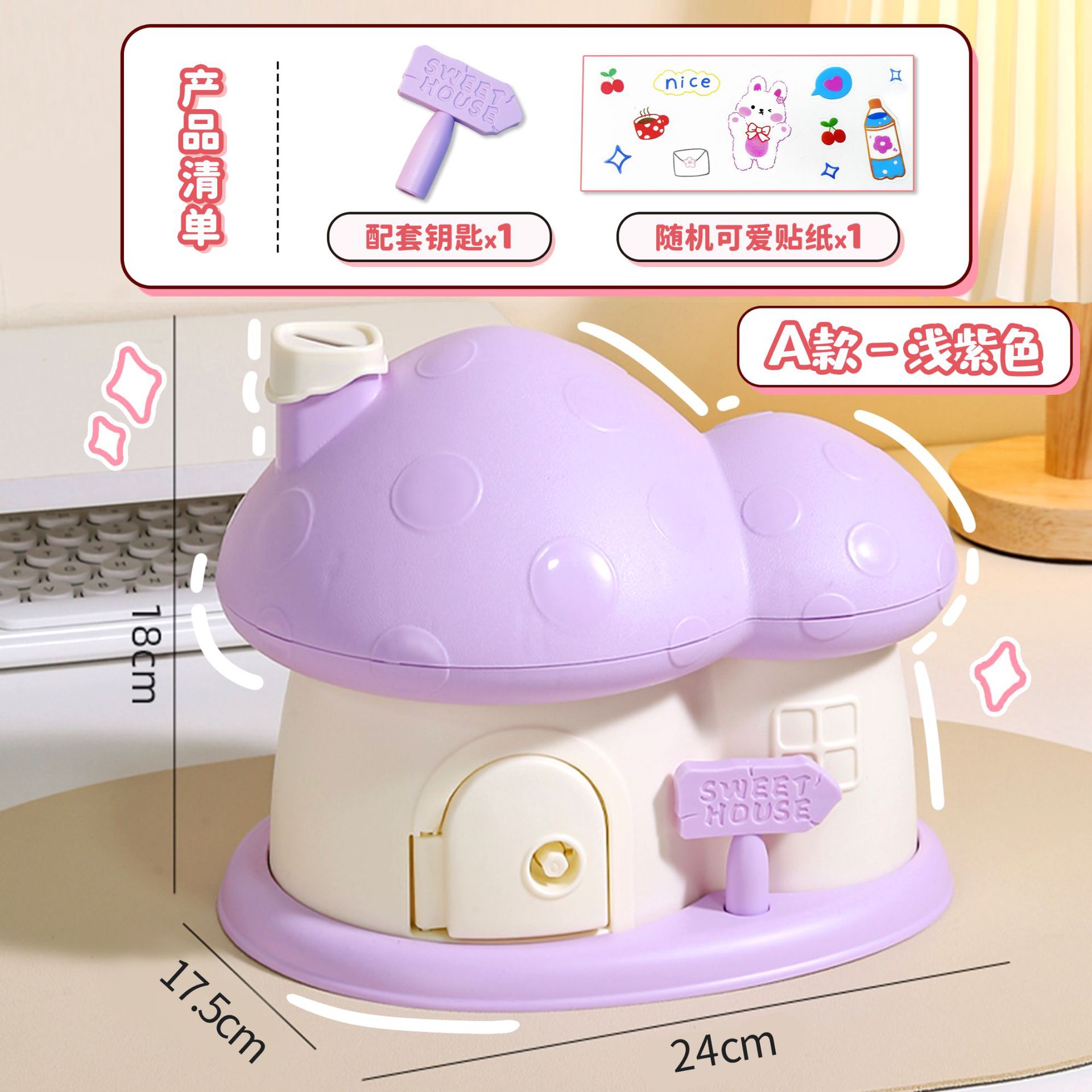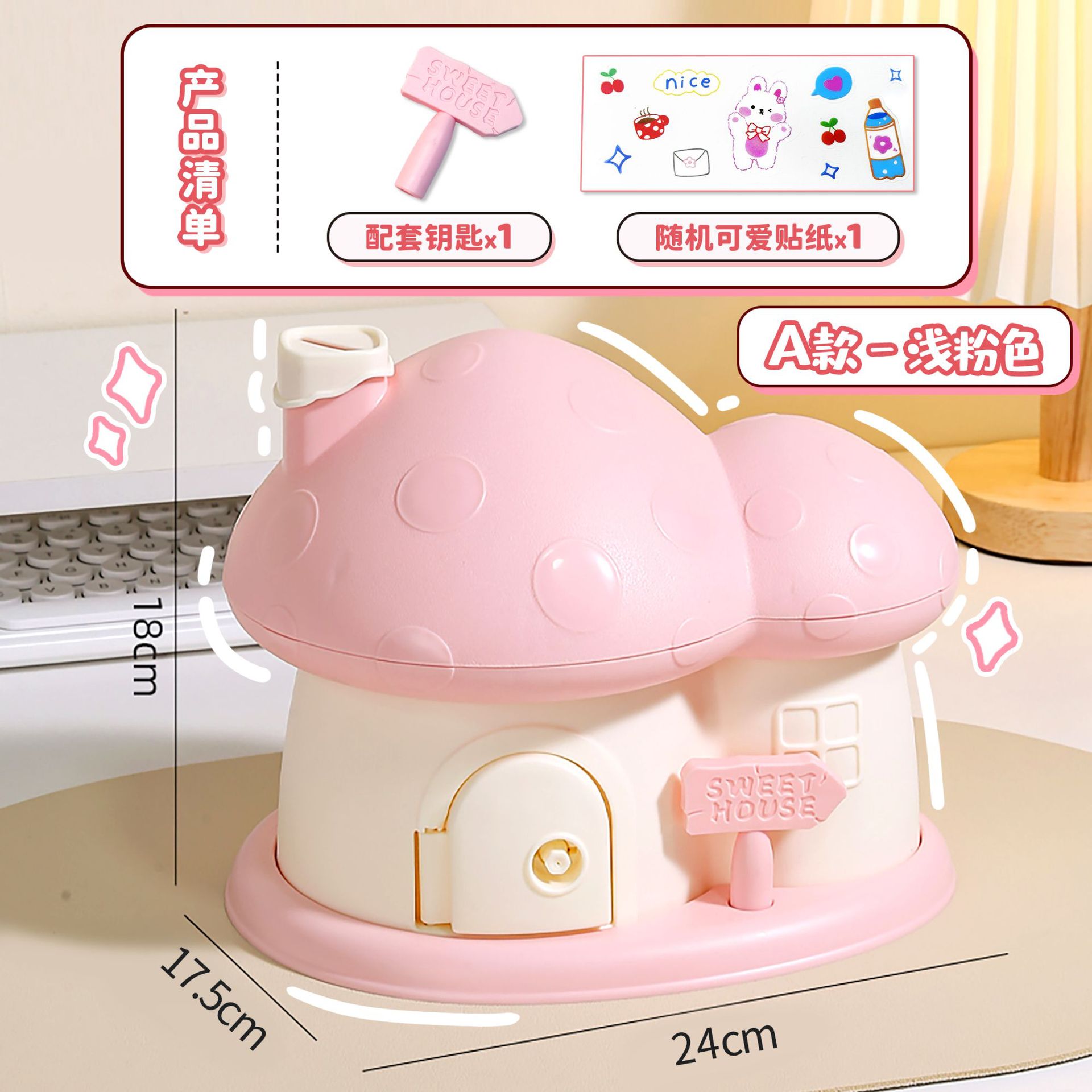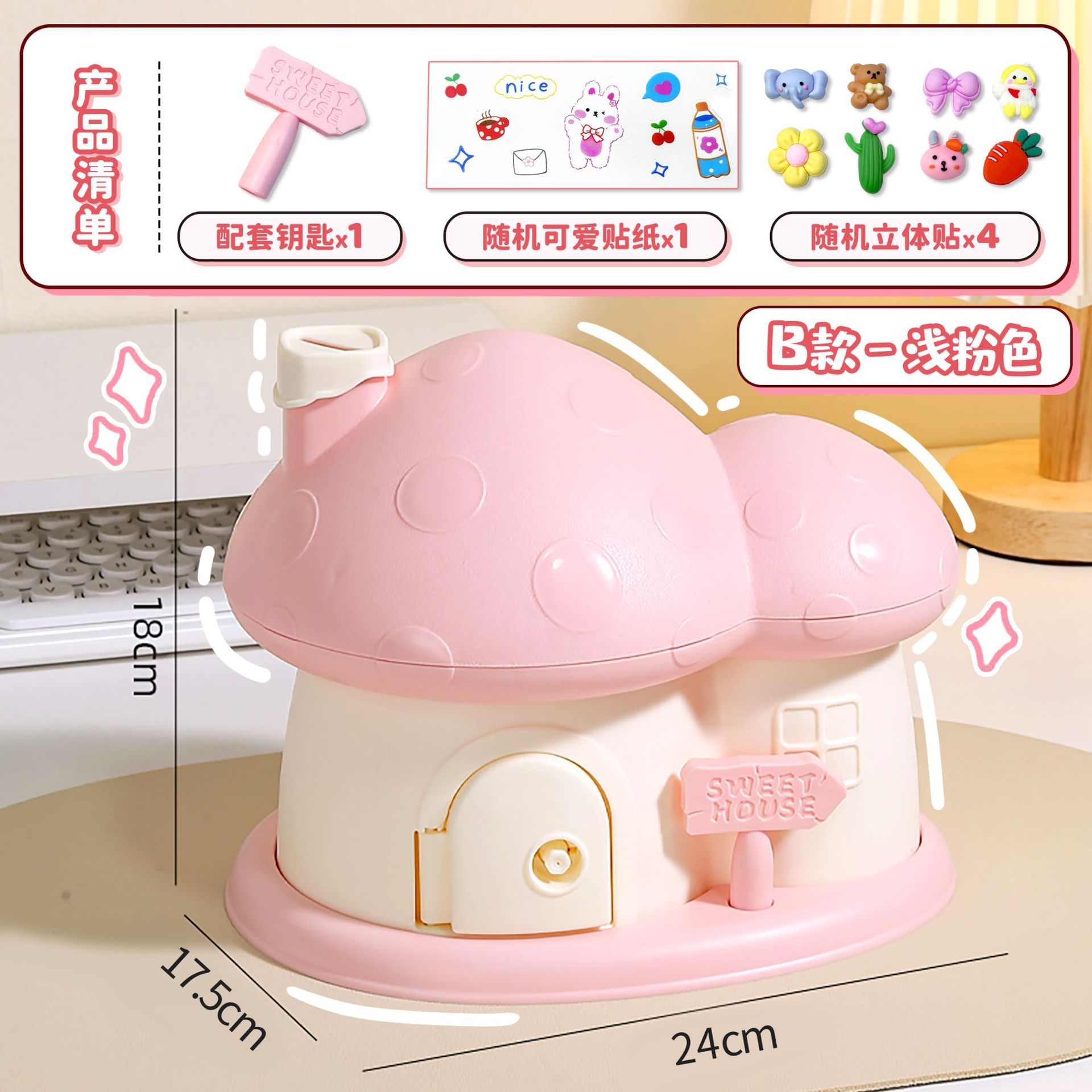 - Design: House, Mushroom House, Money Bank