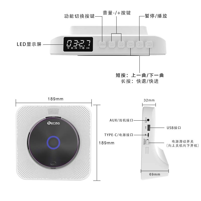 - Product Specifications: CD Player + Bluetooth + Not Connectable to TV + Charging Version New Model [KC-806C]
