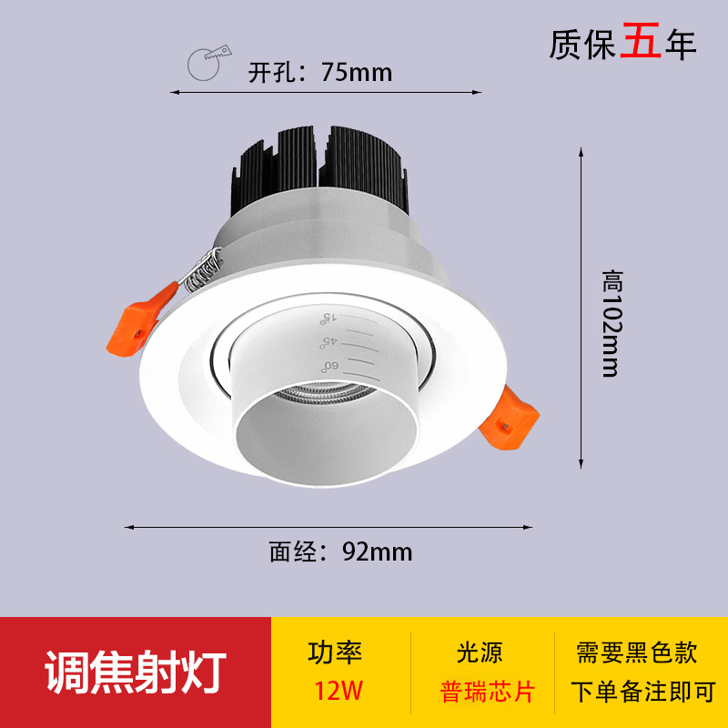 - Power: Focusing Spotlight with 75mm Hole Size - 12W White Body