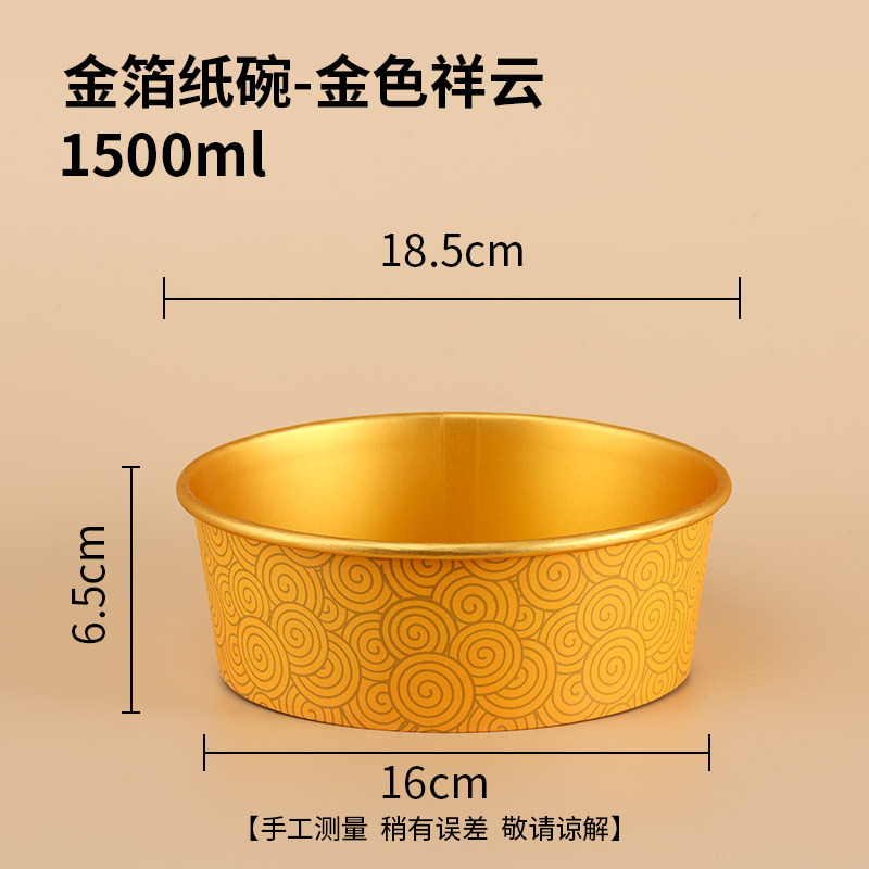 - 規格:【600隻裝】1500ml祥雲金箔紙碗-蓋另拍